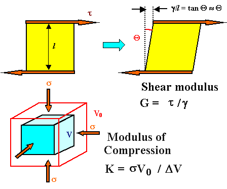 | We can derive two new material parameters, a shear modulus G and a compression modulus K as shown. | |||||||||