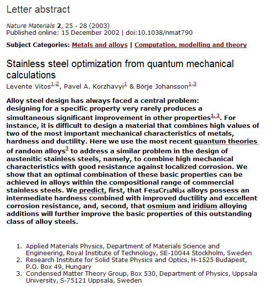 | Here is the abstract of a paper published in Nature Materials in 2002 (underlining by me) that shows that researchers start to calculate properties from scratch. | ||||||