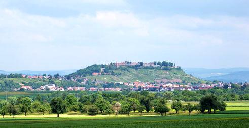 biggest cities of their time. The Celts in what is now Austria, Southern Germany and France were essentially ready to evolve into a High Culture like the Greeks, Etruscians or - later - the Romans but somehow blew it. I blame it on the French. One big Celtic "city" was right next to the town I grew up in, on the "Hohenasperg", a rather well visible "Berg" (=mountain or hill), see below. The so far biggest one, the "Heuneburg", is found about 100 km to the South. Their are plenty of tumuli in the general region. One of them, the "Kleinaspergle" (little Asperg) close to Hohenasperg was about the first to be investigated in 1877, and the central Stuttgart museum is full of Celtic artifacts. | ||||||||||||||
