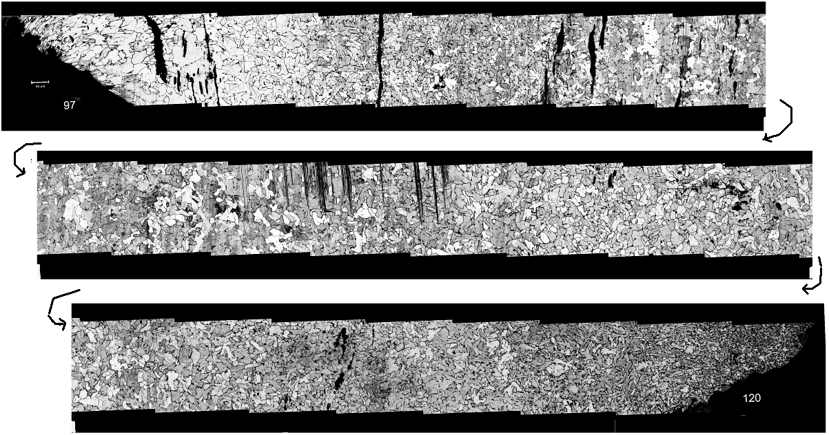 | For all three scans we have huge elongated slag (?) inclusions and considerable