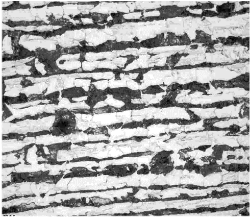 | Here are three pictures showing banding in various steels. Pearlite appears always dark | ||||||||