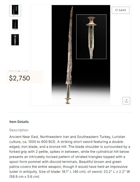 Left: "A North-West Persian Iron Sword; early first millennium BC"; recently
