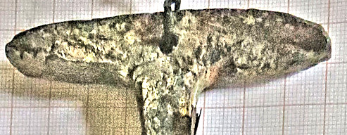 is: One inlay or two – one for the crimping plate, one for the rest? The picture on the right show the one inlay case for an old bronze dagger. It features a real crimping plate next to the blade and a pommel similar to the one in our case. The inlay material is some bone. My guess is that there were two inlays for our sword. Something elaborate on the crimping plate; e.g. a figure like the animals on real IMAS swords. The rest may have been inlaid with some bone or wood. The smith did not make it easy for the inlay guy. The surface onto which the inlay had to be glued or otherwise attaches is rather uneven. The rivet heads are protruding and the re-enforcement strips produce steps on the crimpimg plate and near the pommel. Moreover, fitting the inlay int the protrusions and into the narrow pommel tips, would take very fine carving and fitting of the inlay. Where does this leave us? I will make a few points and then add an epiphany I had months after I had written all of the above: 1. The old smith who forged that sword was a superb craftsman. He worked with very bad iron and had only primitive tools at his disposal but produced a product that modern smith would not easily duplicate. That is also true for the smiths who made the mask swords. 2. Im convinced that faggoting was used in all the IMAS treated here. That is remarkable, considering that in all of the literature to old iron, this technique is never mentioned. 3. The old smith were capable of fire welding (as faggot already proves). But they could do that on very small scales and how they did it is a mystery to me. 4. Luristan shows no traces at all that around 1000 BC a society existed that cold produce high tech items like mask swords. But yet, these swords (and bronze objects like the Master of Animals), have never been found outside Luristan (in contrast the type 2 iron swords). This is a big puzzle. 5. This sword, if properly investigated, may well be the key for the understanding of early iron technology. |