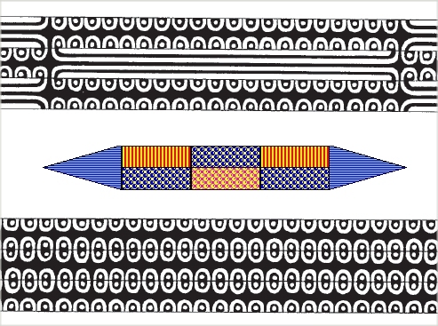 | Six "striped rods" were used, containing twisted and straight parts, plus some hard steel for the cutting edges. Quite a complex blade! | ||||||