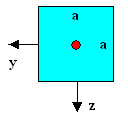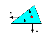 | Look at the rectangular cross-section in the picture below to get this: The red circle denotes the position of the neutral axis (it runs perpendicular to the picture plane in the x-directions, of course). Since bending about the z-axis (by applying a force in y-direction) will produce results different form bending about the y-axis (by applying a force in z-direction), we need to calculate twoarea moments of inertia, Iy and Iy, to take account of that. | |||||||||||||||||||||||||