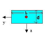| Look at the rectangular cross-section in the picture below to get this: The red circle denotes the position of the neutral axis (it runs perpendicular to the picture plane in the x-directions, of course). Since bending about the z-axis (by applying a force in y-direction) will produce results different form bending about the y-axis (by applying a force in z-direction), we need to calculate twoarea moments of inertia, Iy and Iy, to take account of that. | |||||||||||||||||||||||||