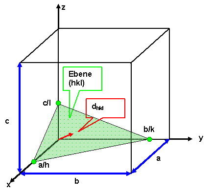 k und l, die ja reziprok die Schnittpunkte in Einheiten der Gitterparameter angeben. |