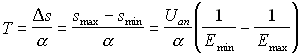 Assuming the dissolution of the oxide layer to be the most (almost only) time consuming process for slow current oscillations we can the calcutale the oscillation periode as the time which is needed to dissolve an oxide layer of the thickness Ds, i.e. the amount of oxide which is produced within one cycle an which depends on the critical field strength Emin and Emax and the applied anodic potential Uan. Consequently we get: