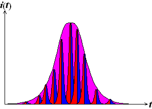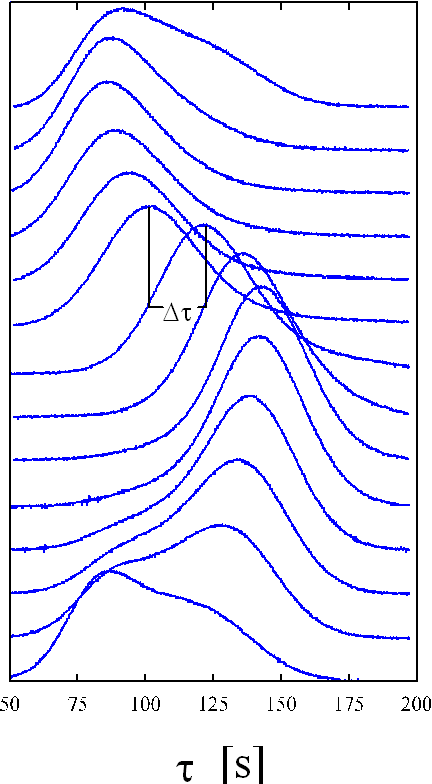 The shape of the transient currents can be understood when assuming a very short time for dissolving the suboxide in comparison with the time dissolving the oxide layer itself. So the transient current peak contains of a number of d-peak like charge flow at time segments where an oxide of corresponding layer thickness has completely been dissolved. This is schematically illustarted in Fig. 16