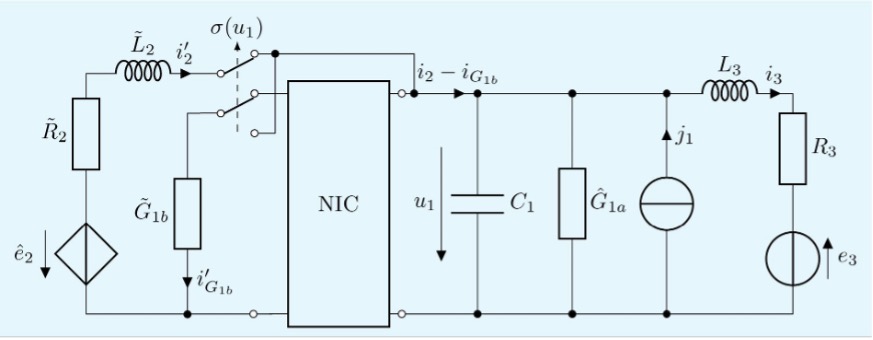 Simulated circuit setup corresponding to the original Hindmarsh-Rose model. Definitions for the nonlinear circuit elements are found in 1.