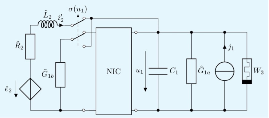 Simulated circuit setup corresponding to the memristive Hindmarsh-Rose model. Definitions for the nonlinear circuit elements are found in 1.