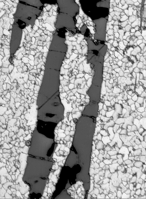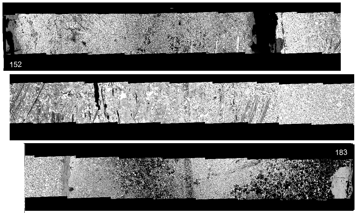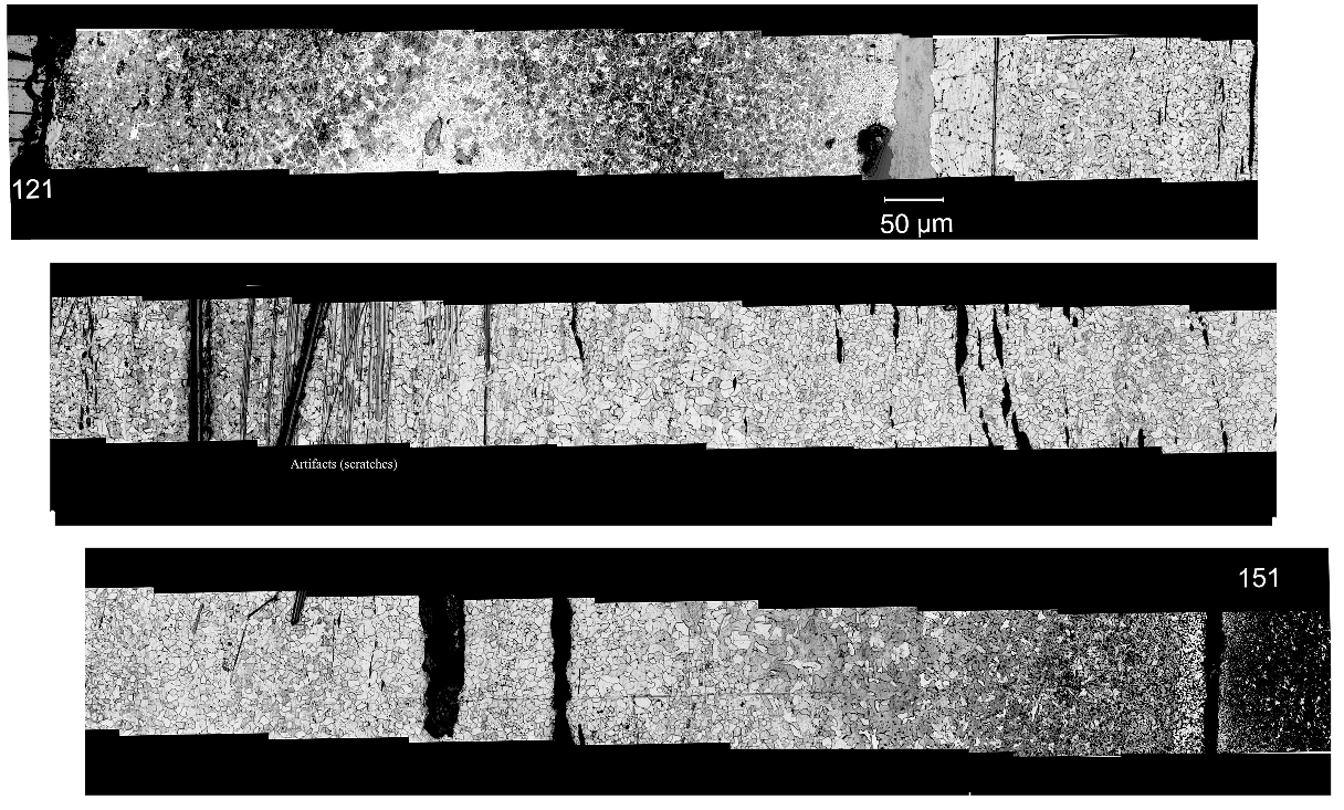 | For all three scans we have huge elongated slag (?) inclusions and considerable