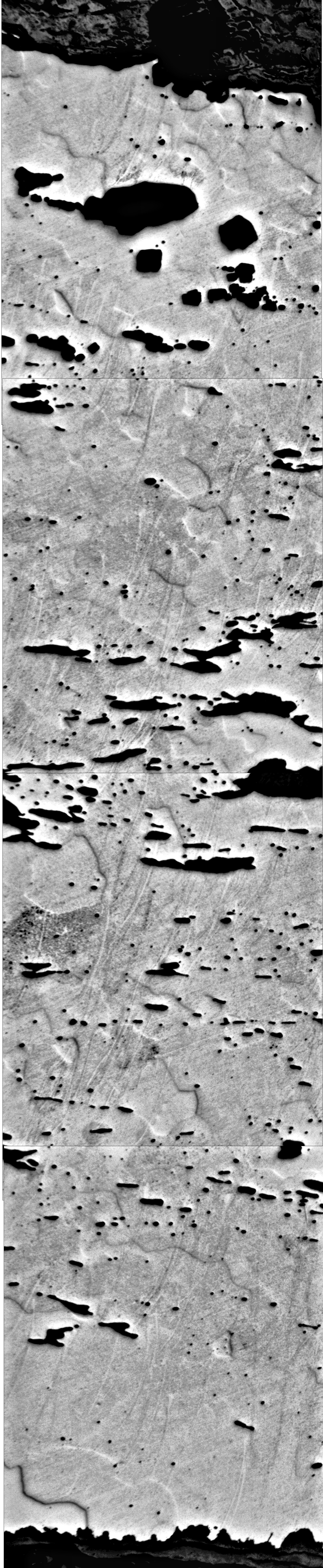 This is a large-scale picture of the etched cross-section of the blade. Refer