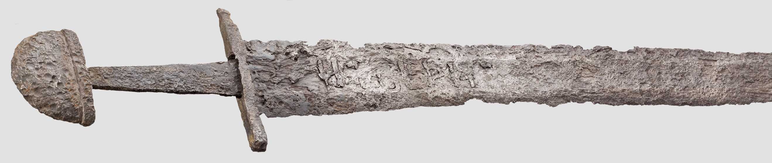 Aachen". There is definitely an inscription, probably a variant of "Ulfberht", but it is not possible to see details. | ||||||||||