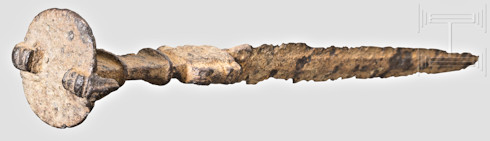 Very corroded bade but good hilt. Somewhat unusual tapered grip part. Now with
