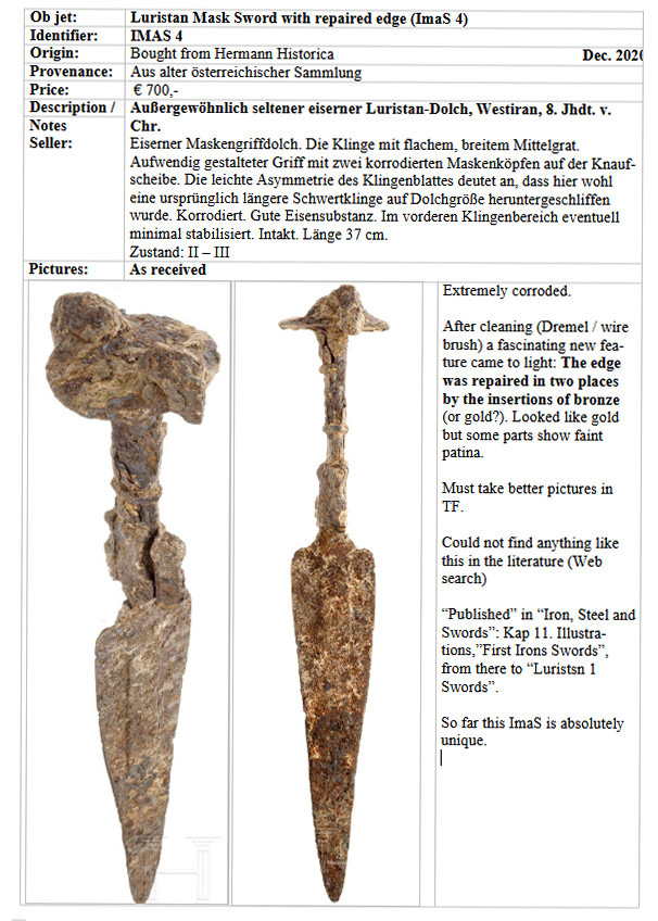 | In 2020 I had access to a somewhat unusual Luristan iron mask sword (called type 1 here).